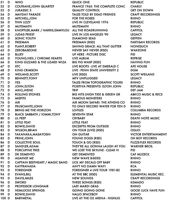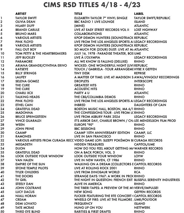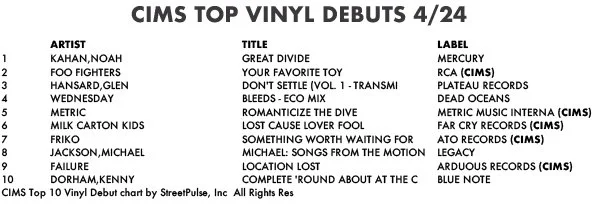 Here are the charts for the week. I'm also including the top-sellers for RSD titles only, 4/18 - 4/23.